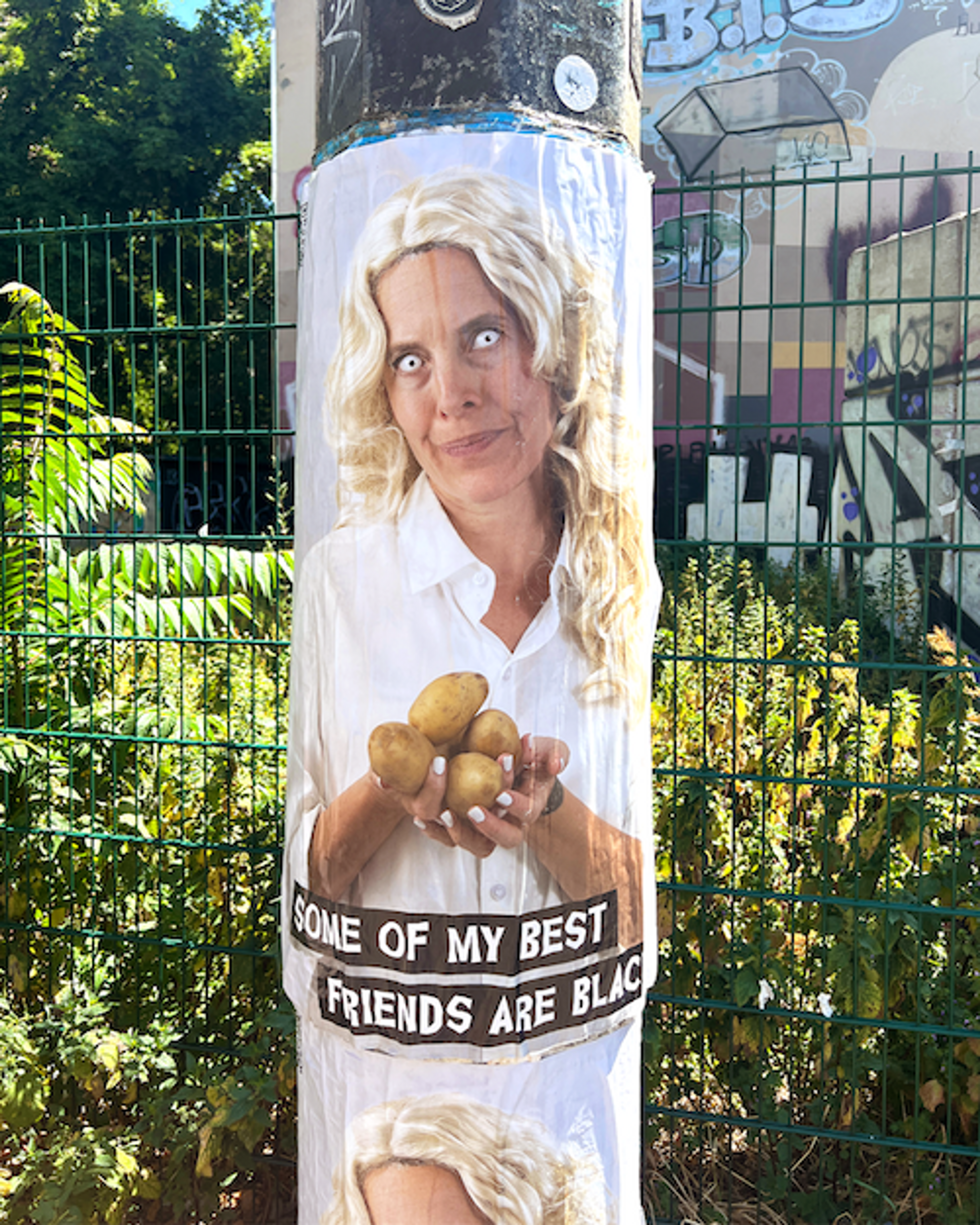 Die Posterserie mit dem Titel, Some of my best friends (2023) greift einen der Sätze von Jane Elliott auf, mit dem Weiße Menschen sich ihren Rassismus weglügen: „I’m not a racist… Why some of my best friends are black!” Die Figuren in Pose zu Sätzen wie „Some of my best friendsare black“ bzw.„romani“,„asian“,„jewish“, „muslim“ oder „trans“ mit Kartoffeln in ihren Händen. Die etwa 5000 Poster kleben im öffentlichen Raum Berlin und verbinden Whiteface mit der Verleugnung des Rassismus von weißen Deutschen.
